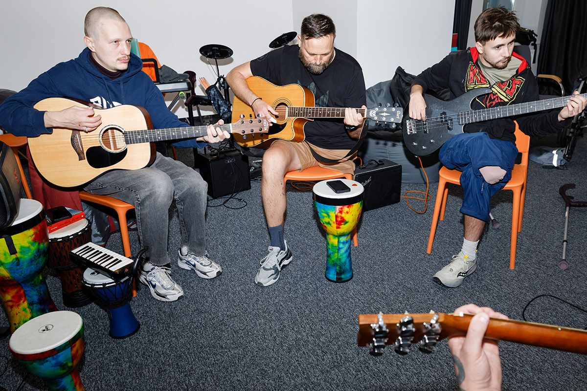 Nedogoda kommt ursprünglich aus der IT-Branche, bringt sich aber seit Jahren in künstlerische Projekte ein und hat auch selbst welche ins Leben gerufen. Dabei hat er sich nebenbei in die Musik und ihre psychologische Wirkung eingearbeitet. Lange bevor er anfing, mit Veteranen und Kriegsversehrten zu musizieren, leitete er Entspannungssessions, begleitete ekstatische Tänze und experimentierte mit Klang und Atmosphäre. „Das war natürlich für ein Festivalpublikum“, sagt er, „hier ist es komplett anders. Wirklich komplett. Es war wie eine Terra Incognita, denn es gibt nicht viel Forschung und Literatur über Musiktherapie für Menschen mit Kriegstraumata.“